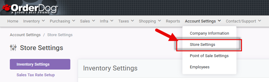 - Start on the OrderDog Portal. Hover over "Account Settings" and select "Store Settings".