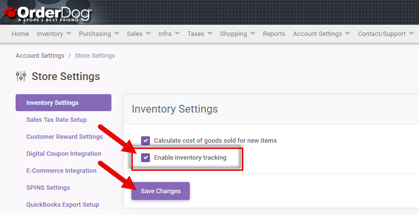 - If this is your first time tracking inventory, turn the inventory tracking option on. Scroll down and press “Save Changes”.